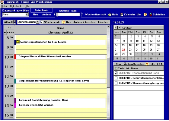 Zu jedem Termin steht Ihnen ein Memofeld zur Verfügung
